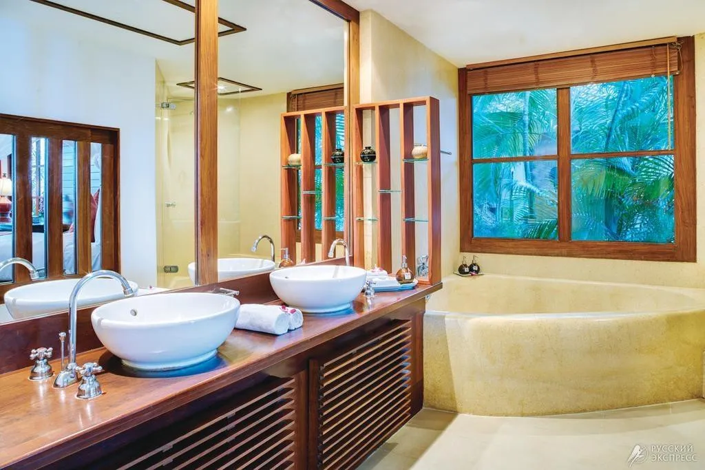 Гостиная, балкон (кроме номеров Suite), терраса (кроме Seaview Hill Villa, Seaview Villa, Beach Front Villa), внешняя зона отдыха, индивидуальный кондиционер, сейф, интернет (WI-FI), телевизор (русские каналы), утюг и гладильная доска (по запросу), мини-бар (платно), набор для приготовления кофе и чая, халат и тапочки, фен,напольное покрытие в спальне - дерево, отделка ванной - дерево