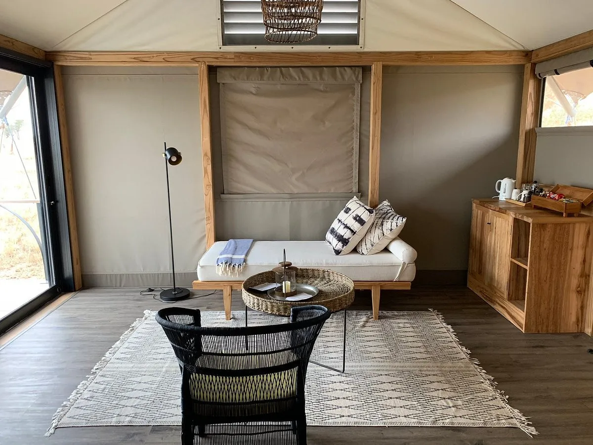 В номере 1 кровать размера " king-size" и 1 одноместная кровать, терраса с небольшим открытым персональным бассейном и гостиная с видом на саванну. Количество гостей: 3