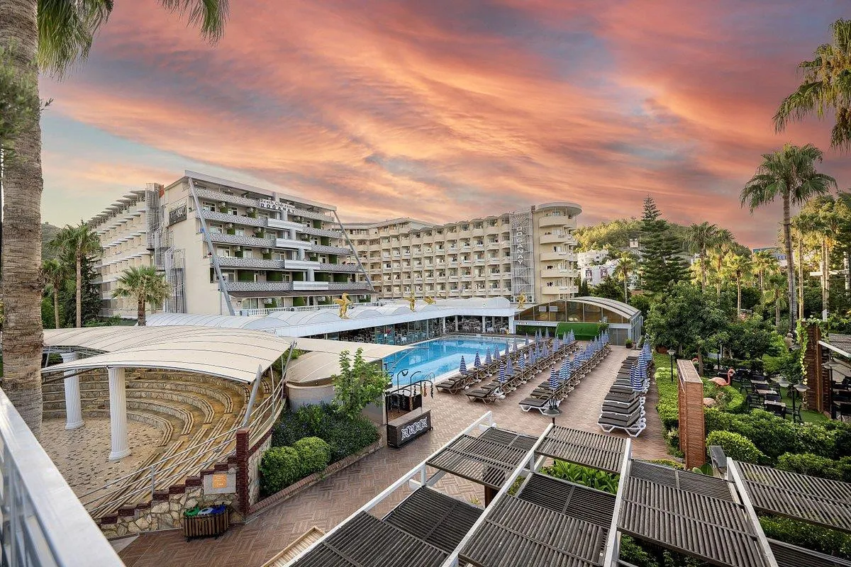 Отель Beach Club Doganay расположен в поселке Конаклы, в 7 км от Аланьи, через дорогу от собственного песчано-галечного пляжа. Расстояние до международного аэропорта Антальи составляет 116 км.