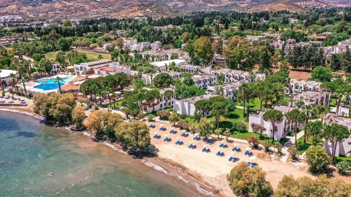 Отель Club Muskebi Hotel расположен в 46 км от аэропорта Милас-Бодрум, на берегу моря в районе Ортакент.