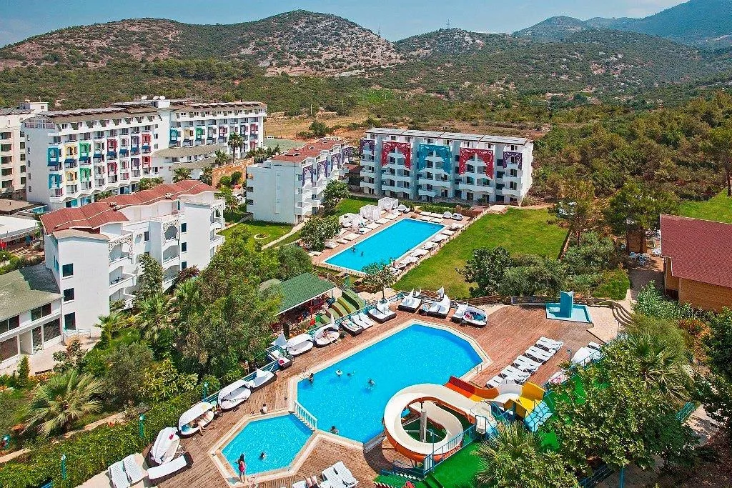 Отель Club Hotel Anjeliq расположен в 126 км от аэропорта Антальи, в поселке Конаклы. Состоит из одного 6-этажного здания и восьми 3-4-этажных корпусов.