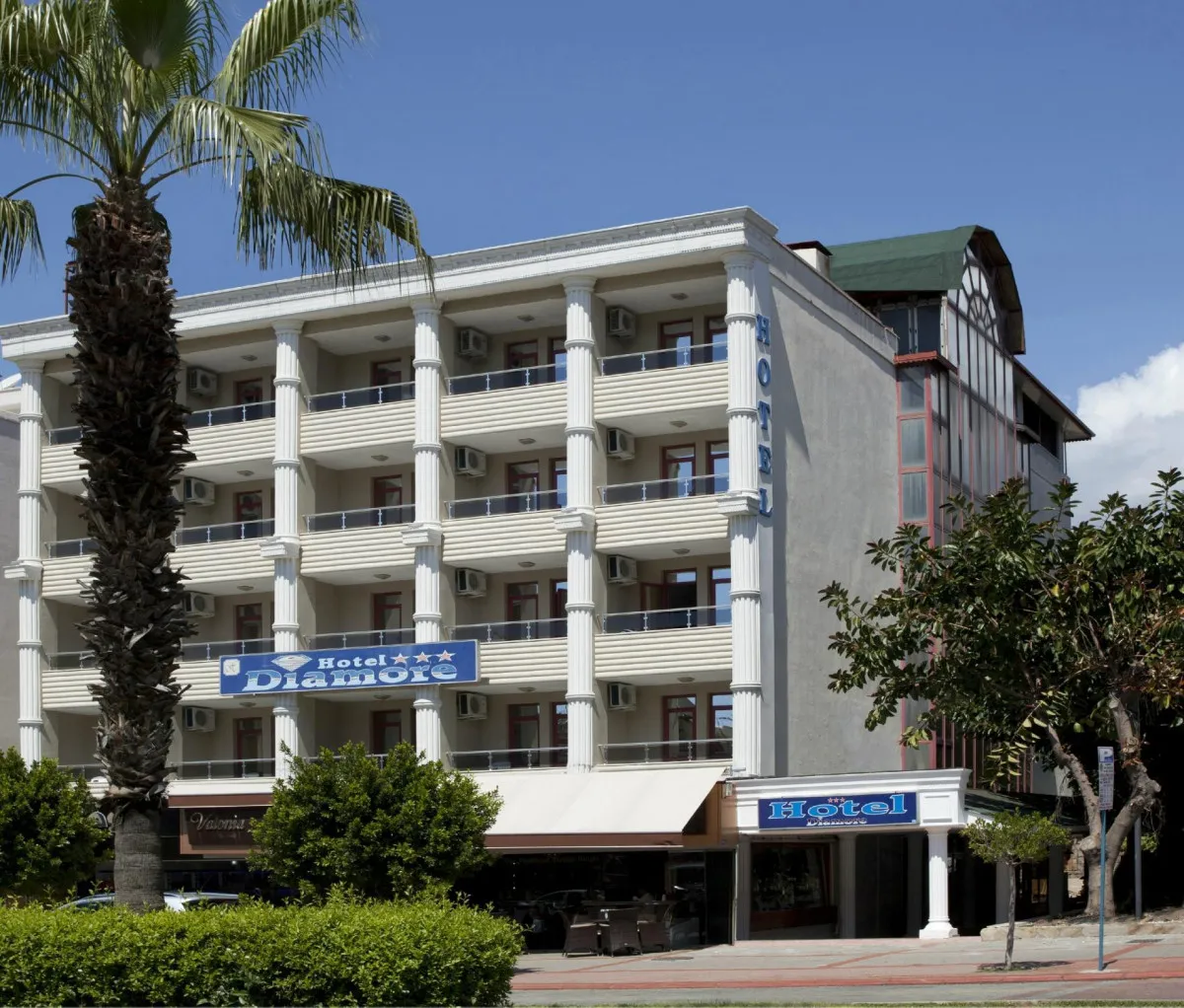 Отель Diamore расположен в городе Аланья, в 41 км от аэропорта Газипаша-Аланья.