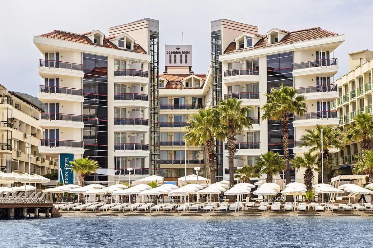 Poseidon Hotel удачно отхватил себе местечко в двух километрах от центра Мармариса, у променада, связывающего эту курортную столицу Турции с Ичмелером ее более просторным и спокойным пригородом на берегу живописнейшего залива, где, впрочем, помимо центров водного спорта и популярных дайв-сайтов, вдоль берега сосредоточилось и немало клубов и дискотек. В распоряжение любителя древностей окрестная местность предоставляет остатки греческих и памфилийских городов, а также колоритные деревни, где сохранился традиционный уклад. А тем, кто без ума от моря теплые уютные бухты и заливы, не слишком глубоко прячущие природные и рукотворные сокровища, плюс паромное сообщение с Родосом и многочисленные яхтенные и катерные прогулки, организованные городским туристическим офисом.