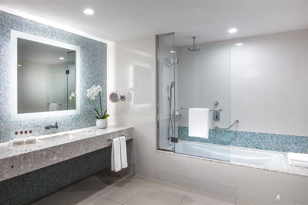 42 м2, номер с привилегиями. Кровать king-size, диван, рабочее место, ванная комната, вид на город и бухту. Доступ в клубный лаундж. Максимальное количество гостей: 3.