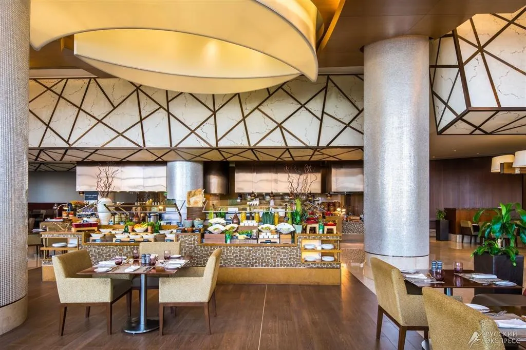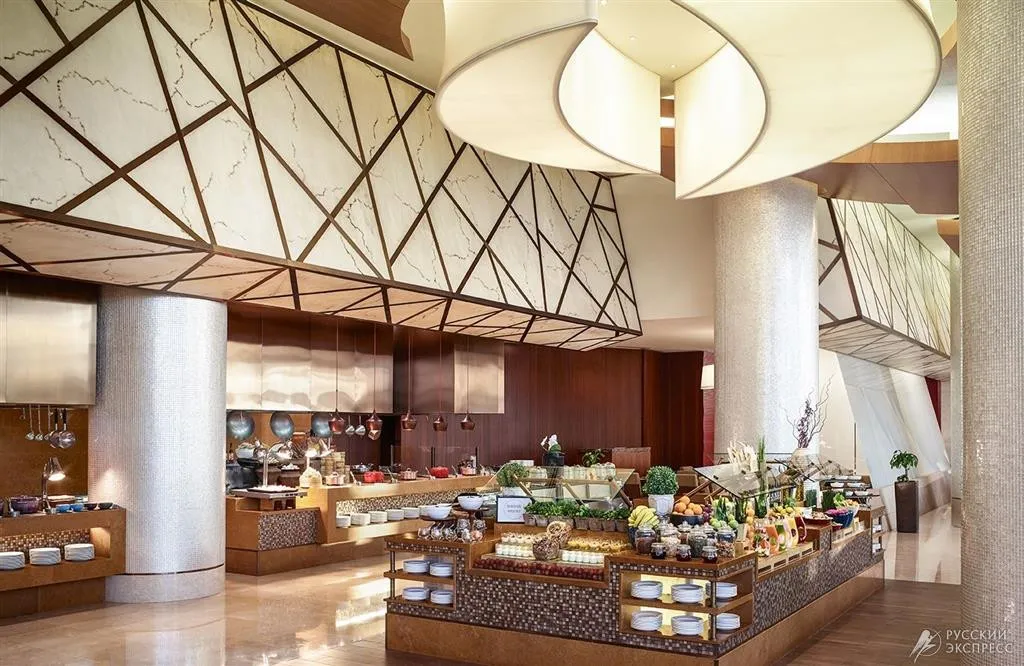 • Liwan – ресторан интернациональной кухни. Завтрак, обед и ужин в формате «шведский стол», меню a la carte. Размещение гостей в зале и на открытой террасе. Завтрак с 06:30 до 10:30, обед с 12:30 до 15:00, бранч с 13:00 до 17:00