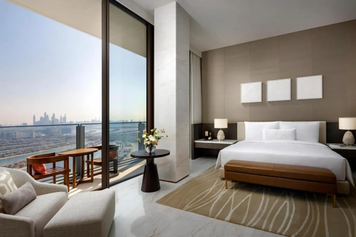 55 м2 с балконом 9 м2 и видом на остров Пальма Джумейра. Одна кровать king-size или две кровати queen-size. Удобства: ванная комната с душевой кабиной, возможность объединения смежных номеров. Максимальное количество гостей: номер с большой двуспальной кроватью king-size – 2 взрослых, номер с двуспальной кроватью queen-size – 3 взрослых и 1 ребенок или 2 взрослых и 2 детей.