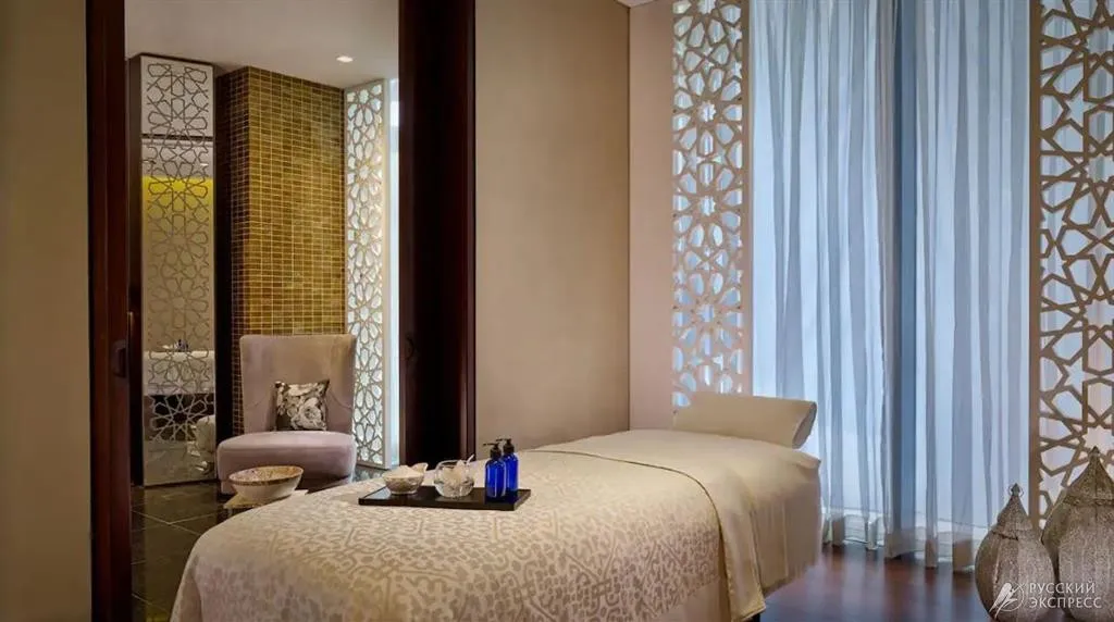 • Sahha – ресторан a la carte с блюдами турецкой, марокканской, тайской, индийской, ливанской, арабской, индонезийской и малазийской кухонь. Расположен на первом этаже с выходом на террасу и видом на Персидский залив. Дресс-код: casual. Время работы: с 06:30 до 11:00 и с 18:30 до 22:30