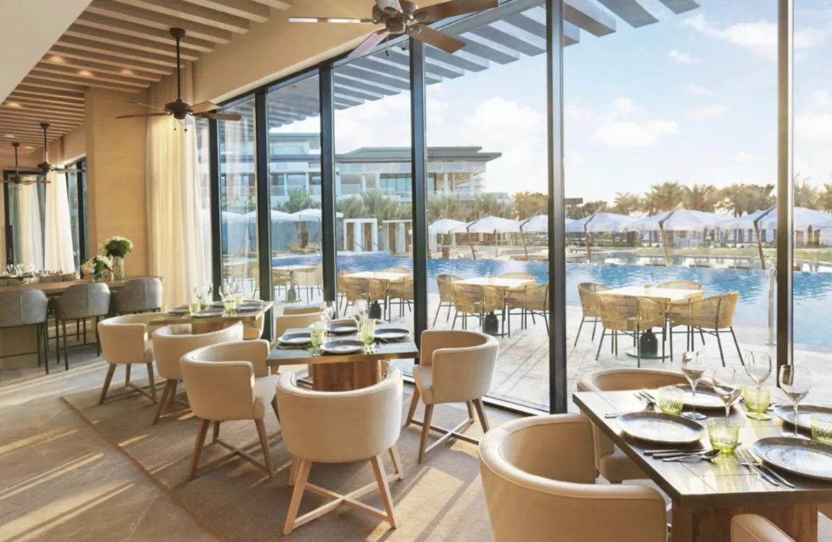 • Levant & Nar – ресторан a la carte турецкой и ливанской кухонь с видом на Персидский залив. Расположен справа от пляжа. Дресс-код: smart casual. Время работы: с 18:00 до 23:00, в субботу и воскресенье с 12:00 до 15:00