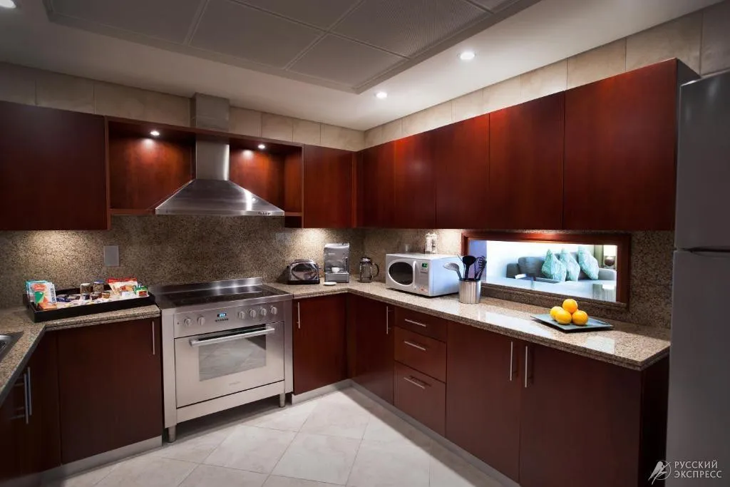 190 м2, изысканный люкс с двумя спальнями, в одной – кровать размера king-size, в другой – две односпальные кровати; постельное белье премиум-класса и отдельные ванные комнаты. В люксе: панорамные окна с видом на Персидский залив и колесо обозрения Ain Dubai. Есть просторная гостиная, обеденная зона, полностью оборудованная кухня, прачечная и комната для персонала. Максимальное количество гостей: 5.