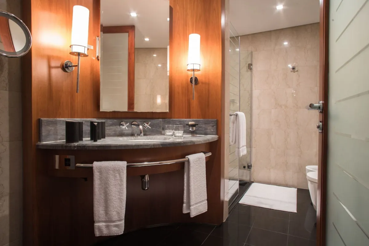 63 м2, элегантный номер номер с панорамным видом на город и отдельной гостиной, письменным столом, одной спальней с кроватью king-size и роскошной ванной комнатой. Вместе с номером предоставляется доступ в клубный лаунж и возможность пользования конференц-залом. Максимальное количество гостей: 2 взрослых, 2 детей.