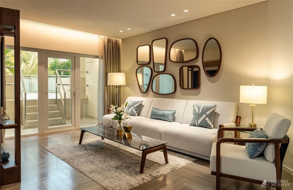 36 м2, современный номер с кроватью king-size и роскошной ванной комнатой. В номере есть зона отдыха с диваном и собственный внутренний дворик с шезлонгами. Максимальное количество гостей: 2.