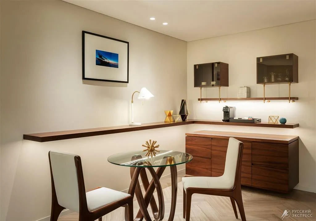 34 м2, элегантный номер с кроватью king-size и роскошной ванной комнатой. В номере есть рабочий стол. Гости номера имеют привилегированный доступ в представительский лаундж. Максимальное количество гостей: 3.