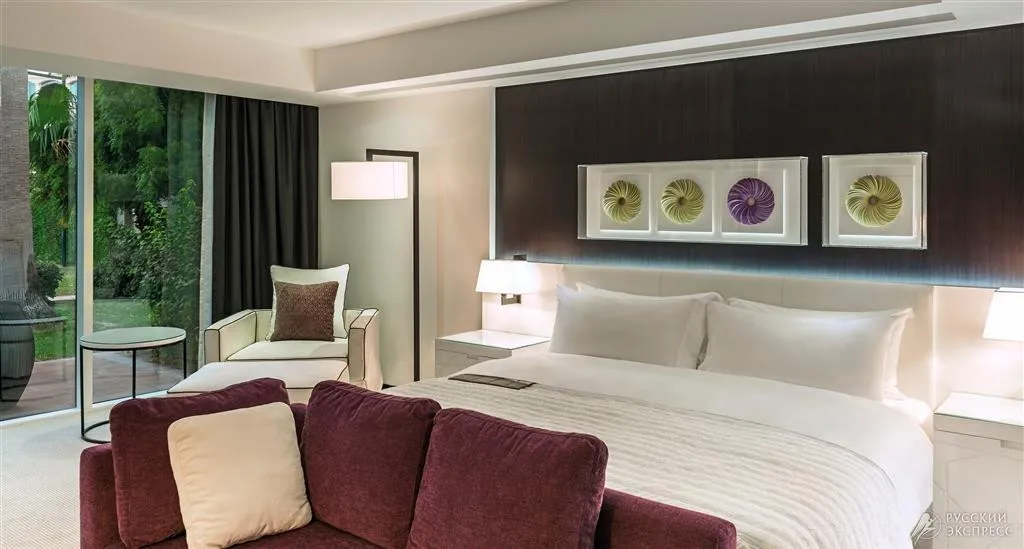 290 м2, элегантный королевский люкс с кроватью king-size и роскошной ванной комнатой с джакузи. В номере есть отдельная гостиная, рабочий стол, обеденная зона, гардеробная, массажное кресло и отдельный внутренний дворик с шезлонгами. Гости номера имеют привилегированный доступ в представительский лаундж. Максимальное количество гостей: 3.