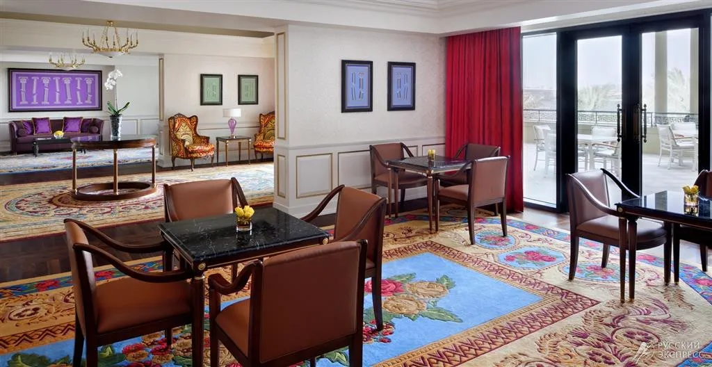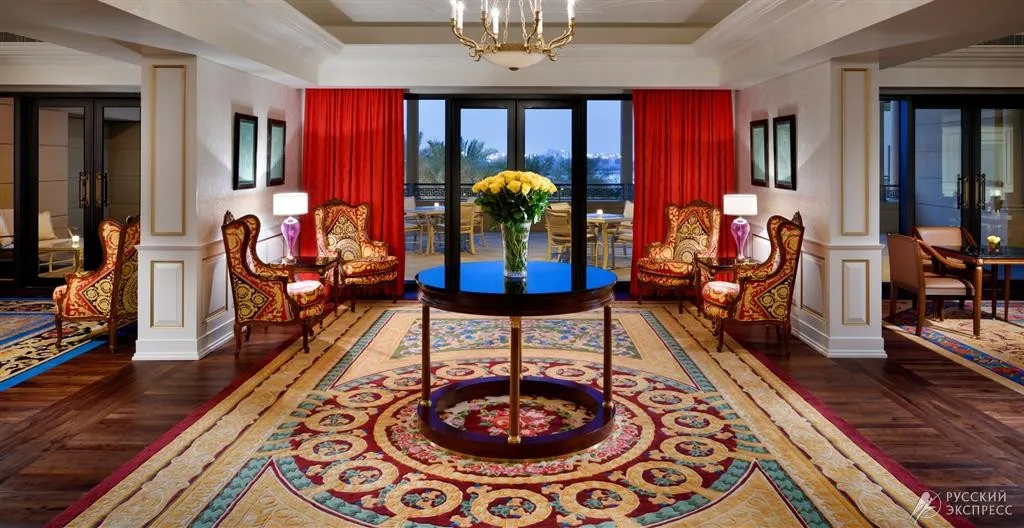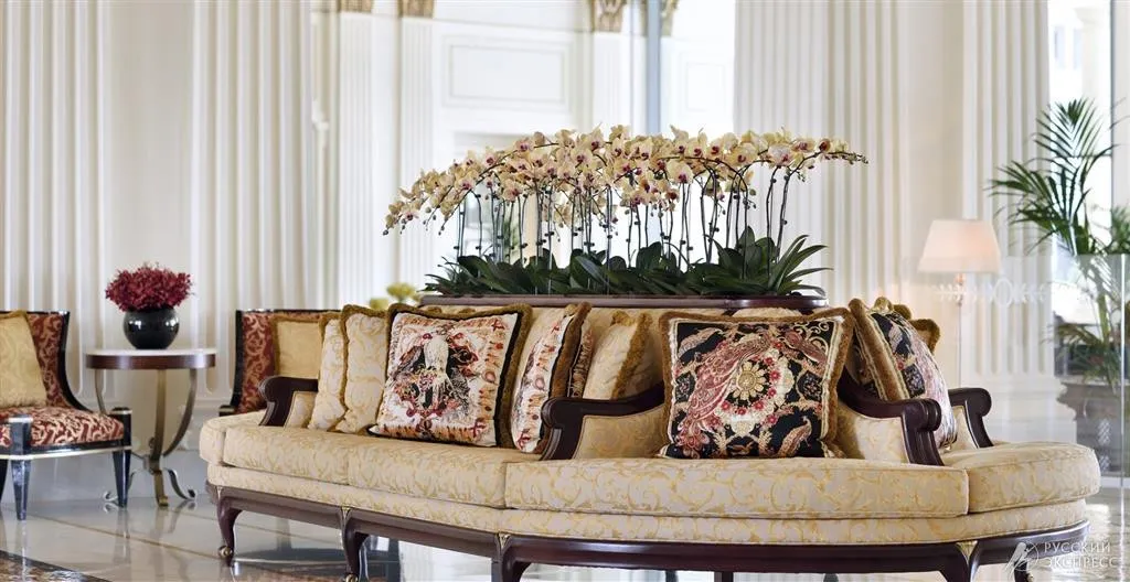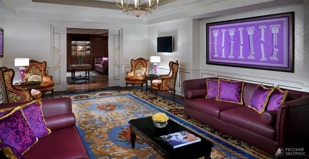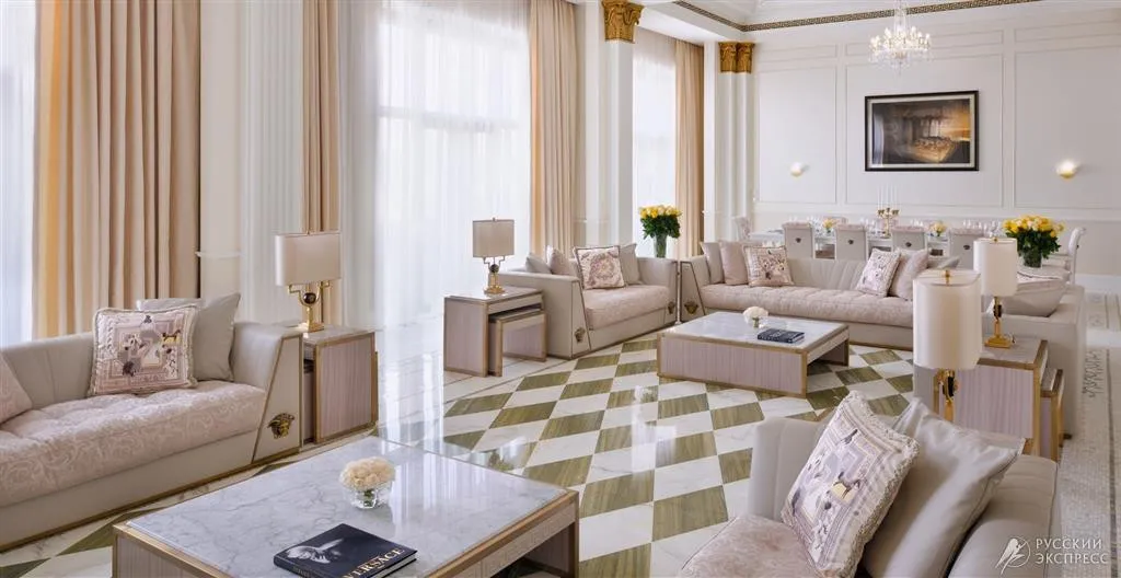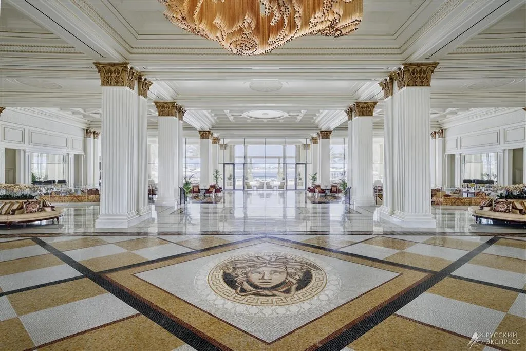 Интерьер отеля впечатляет с первого взгляда: величественный вход с культовым изображением Медузы, высокие потолки и изысканная итальянская мебель создают атмосферу истинной роскоши. Каждый элемент декора, включая ткани и мебель в 215 номерах и люксах, а также в 169 резиденциях, создан эксклюзивно по заказу Versace.