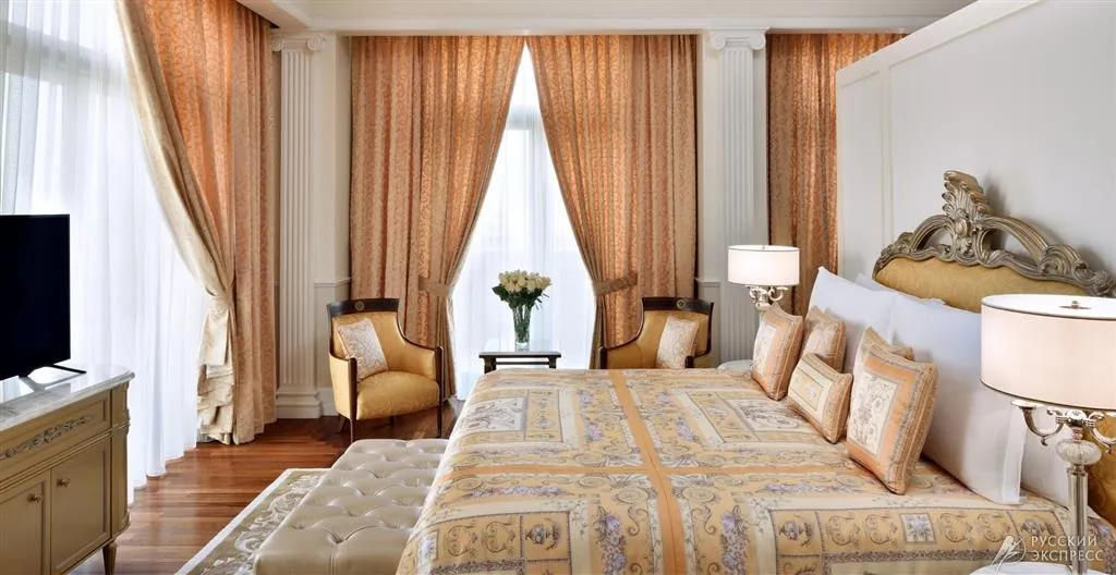 110 м2, с балконом и видом на город. Роскошный итальянский дизайн и мебель от Versace. В номере: king-size кровать, гардеробная, туалетный столик, гостиная, телевизор, мраморная ванная комната, рабочий стол с панелью подключения мультимедиа, автоматизированная панель управления помещением.