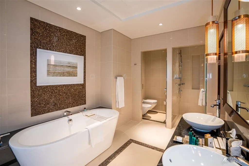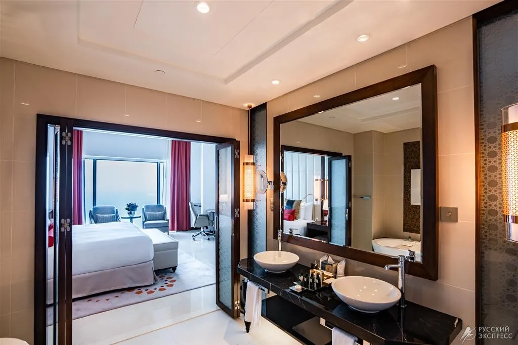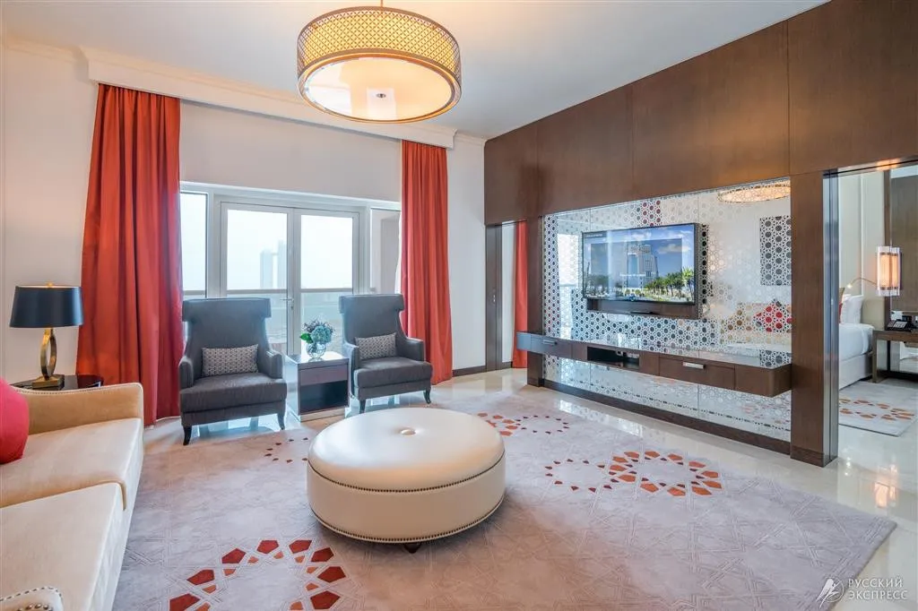 номер с видом на Персидский залив. Две спальни: кровать king-size в одной спальне и две односпальные кровати в другой, гостиная с диваном-кроватью.