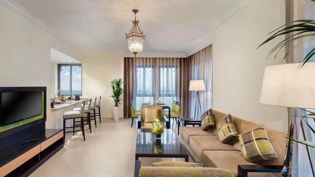 73 м2, люкс бежевых и золотых оттенках с видом на Аравийское море. В люксе: спальня с кроватью king-size, гостиная и обеденная зона. Максимальное количество гостей: 3 взрослых и 2 ребенка.