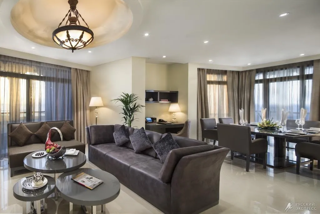 Рестораны и лаунджи отеля приглашают в кулинарное странствие по миру: от изысканных традиционных до интернациональных шедевров. Каждое блюдо – дань гостеприимству, поданная с теплотой и мастерством. А круглосуточный сервис в отеле добавит отдыху легкости и свободы. Современный фитнес-центр, сауна и просторная терраса с шезлонгами под горячим арабским солнцем – идеальные условия для восстановления сил.