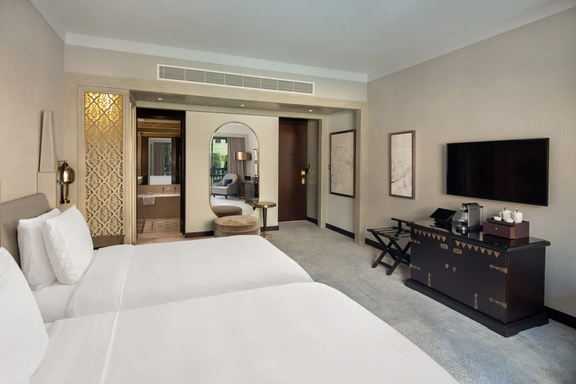 51 м2, с балконом и видом на фонтан. Две односпальные кровати. Возможно размещение дополнительной кровати. Удобства: завтрак, бесплатный трансфер в аэропорт, поздний выезд в 16:00, услуги по чистке обуви, эксклюзивные преимущества, гладильные услуги – одна рубашка и один костюм. Максимальное количество гостей: 3 взрослых или 2 взрослых и 2 ребенка до 11 лет.