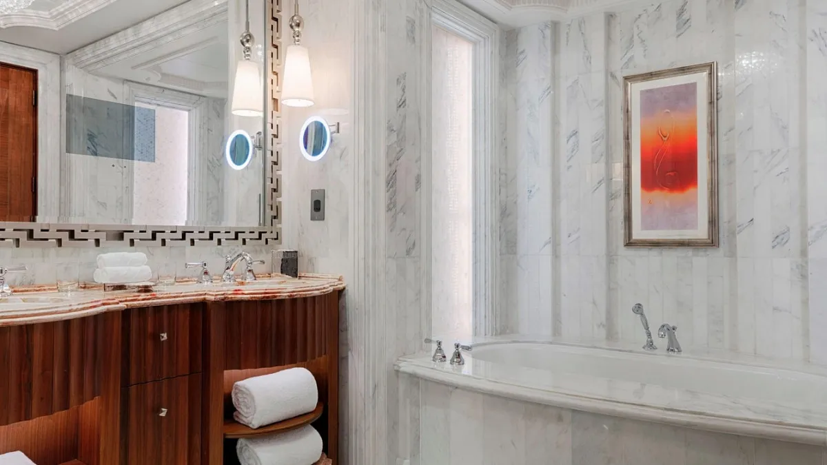 Отель The St. Regis Abu Dhabi 5* объединяет арабское гостеприимство с более чем столетней традицией бренда St. Regis. Он принадлежит компании Marriott, предлагая элитарный отдых семейным парам и бизнес-туристам. Элегантные номера украшены мрамором Statuario Royal и шерстяными коврами ручной работы. В спальнях – ортопедические матрасы и люксовое постельное белье Frette. В ванных комнатах – эксклюзивные косметические принадлежности Remede.