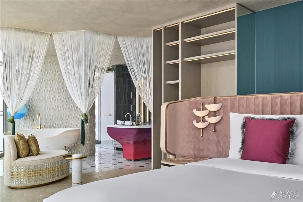 Отель W Dubai Mina Seyahi располагается на первой береговой линии и имеет собственный песчаный пляж W Beach протяженностью 900 м.