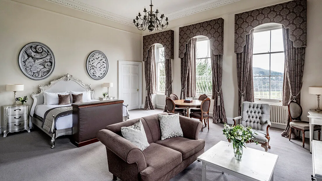 52 м2, вид на долину реки Эйвон, гардеробная зона, двухместный диван, два кресла и письменный стол