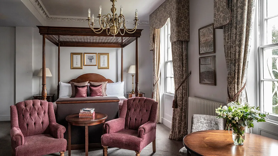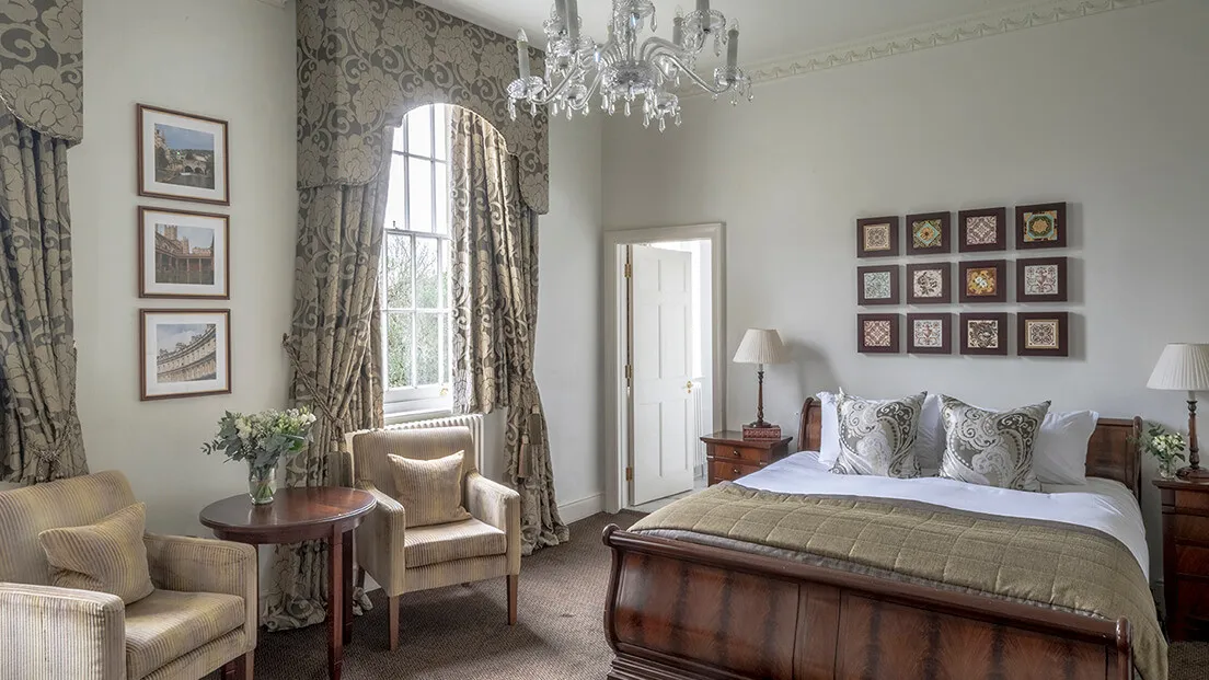 35 м2, вид на долину реки Эйвон, в спальне есть отдельная гардеробная зона, а также оригинальный камин и два кресла