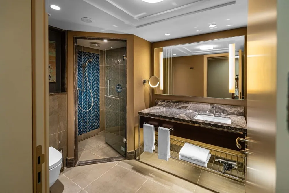 244 м2, номер с одной спальней, отдельной гостиной и обеденной зоной, просторной ванной комнатой с джакузи и личной сауной. Количество гостей: 3