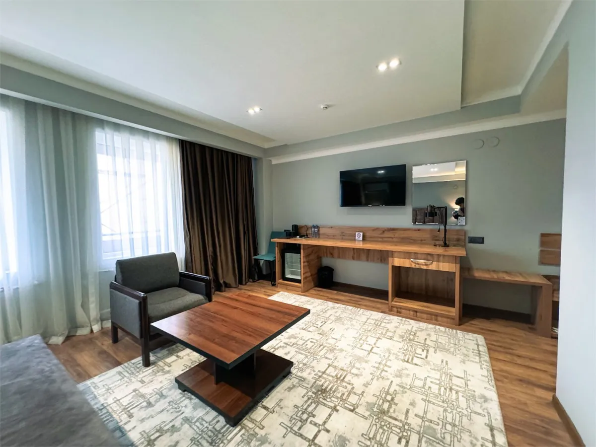 47 м2, номер с одной большой кроватью, гостиная зона для отдыха или работы. Количество гостей: до 3
