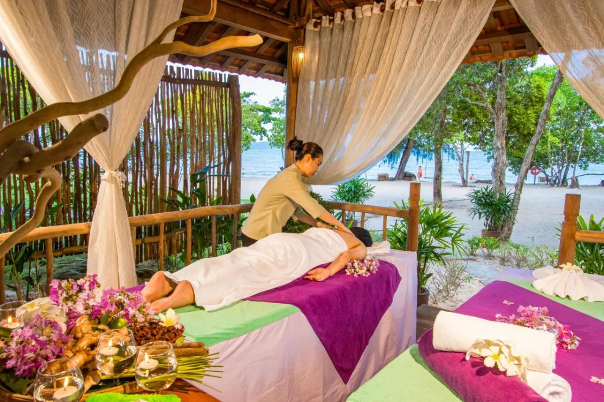 Курортный СПА-отель Green Bay Phu Quoc Resort & Spa расположен на острове Фукуок, прямо посреди леса и на берегу моря. Отель состоит из бунгало и вилл, сочетающих традиционный стиль и современный комфорт. Гости отеля могут расслабиться в СПА-центре, позаниматься в тренажерном зале или поиграть в теннис, принять участие в кулинарном мастер-классе или заняться водными видами спорта. Расстояние до Международного аэропорта – 30 км.
